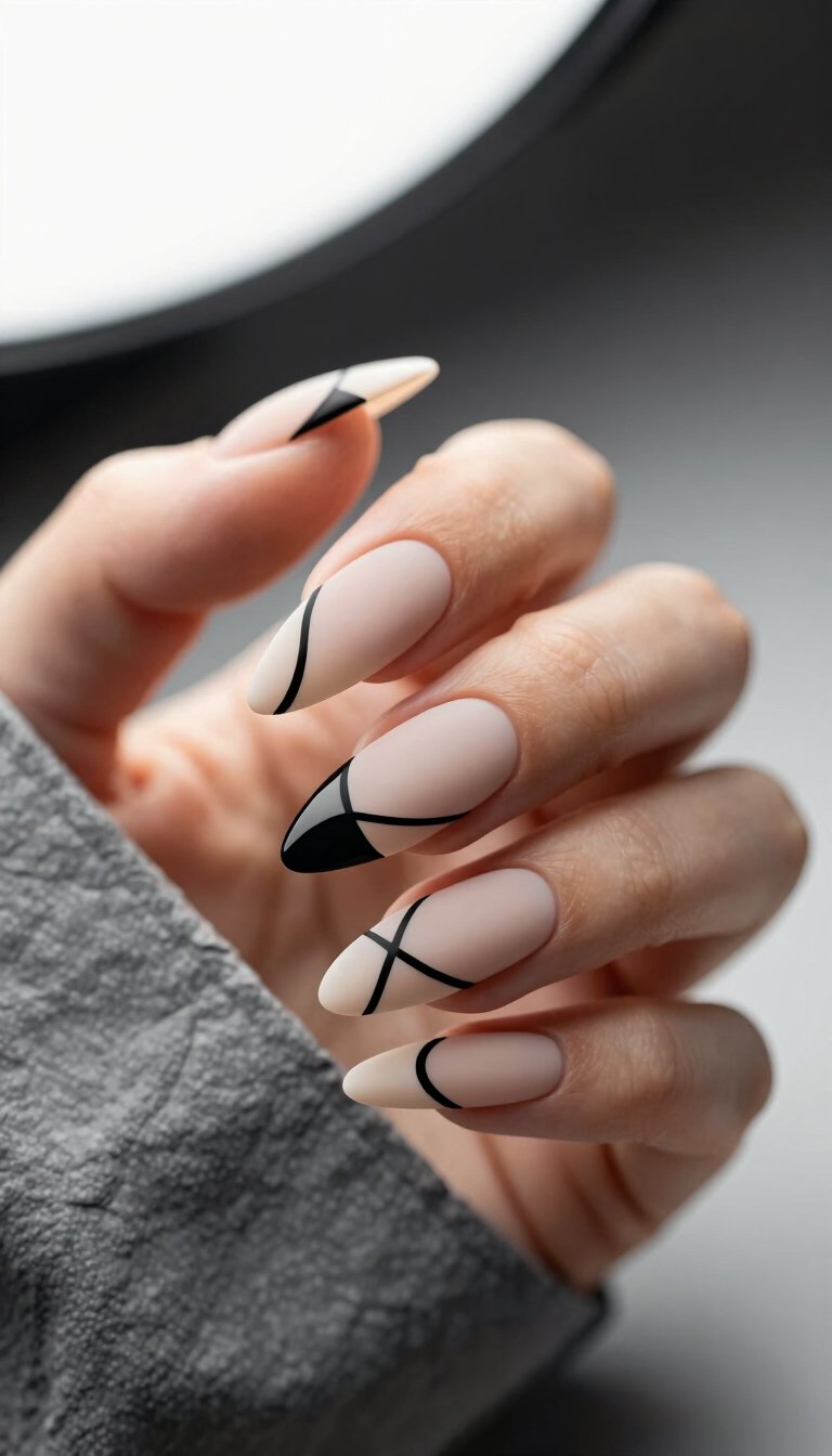 Simple black or white lines on a bare nail, creating abstract shapes or delicate patterns. Less is more here, and the almond shape emphasizes the elegance of negative space. This is peak minimalist chic for the modern woman. It’s so clean, it feels like a breath of fresh air.