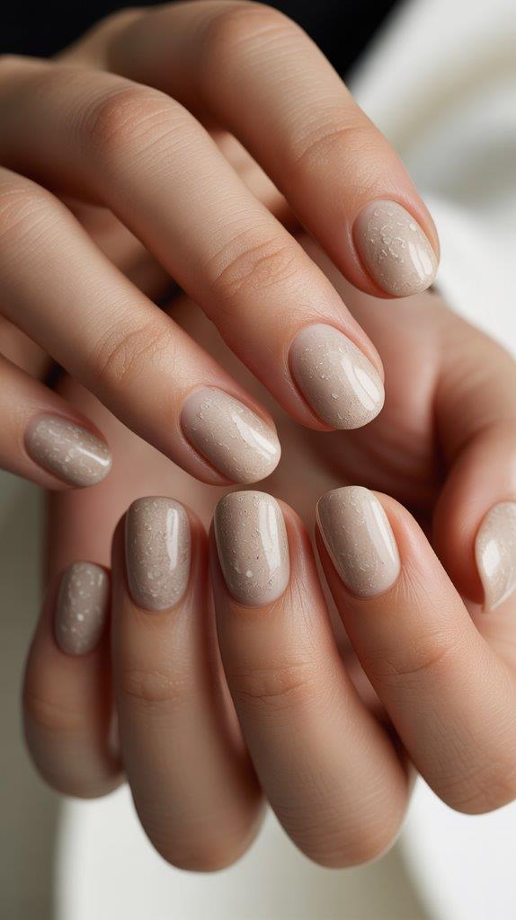 This sounds gritty, but trust me. You mix actual fine sand or texture powder into a beige or nude gel. It creates a stone-like, organic finish. Pair it with gold jewelry, and you look like an expensive architectural model. It’s the ultimate “quiet luxury” for the beach bum.