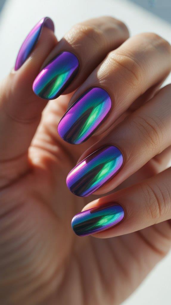 Hailey Bieber started the glazed donut trend ages ago, but in 2026, we use a coarser pearl dust. It gives more of a “mother of pearl” texture than a smooth glaze. It shimmers white, pink, and green. It covers imperfections in your natural nail plate like a charm.