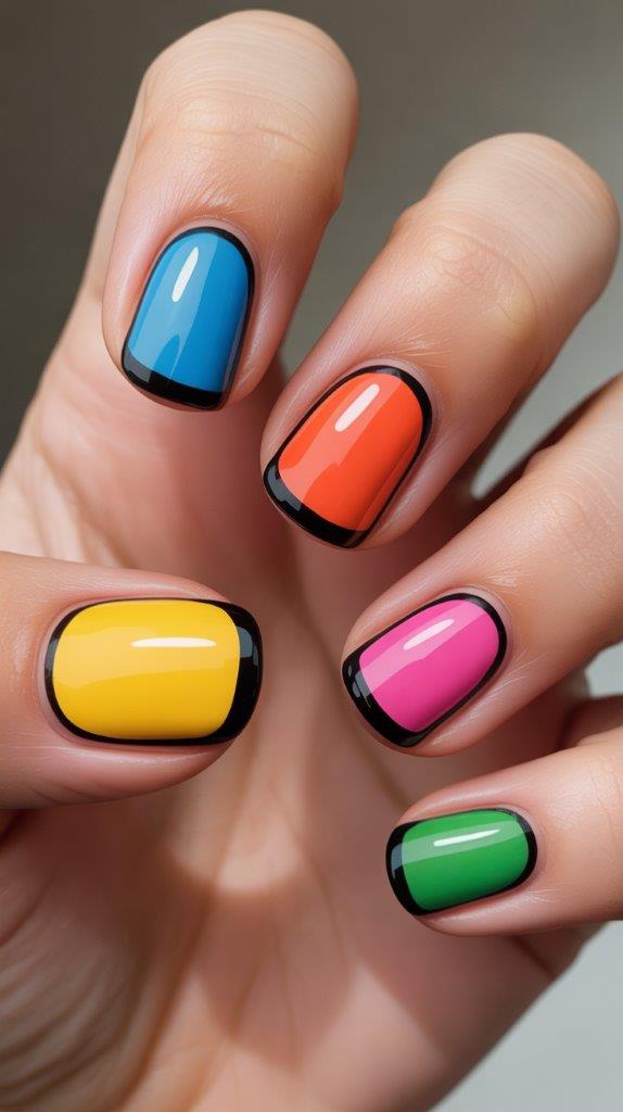This looks like a cartoon. You paint the nail a solid bright color (like hot pink) and outline the entire perimeter in black. Then, add a white “reflection” line. It makes your nails look 2D. It trips people out in real life.