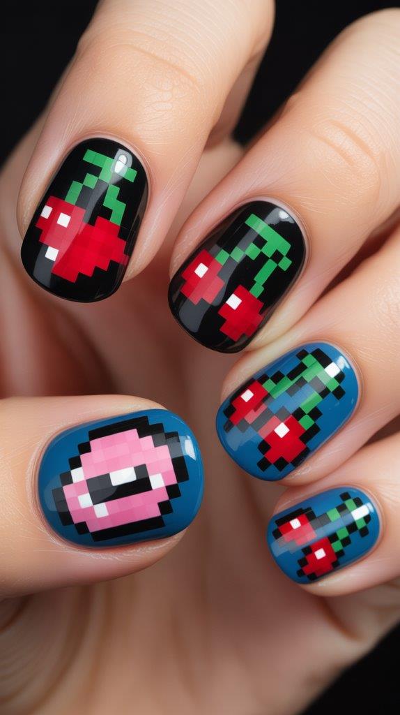 Retro gaming is huge. Use a dotting tool to create pixelated hearts, cherries, or smiley faces. It’s blocky and nostalgic. It takes patience, but the result is adorable.