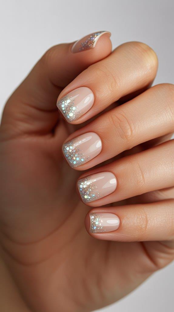 If you want sparkle without the mess, try the glitter cuticle. Apply a sheer nude base and place a tiny amount of holographic glitter only at the base of the nail near the cuticle. This “reverse” sparkle looks sophisticated and hides regrowth perfectly. Who has time to go to the salon every ten days? This design buys you an extra week!