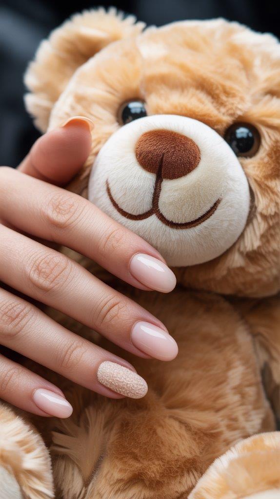 If you want a truly unique and cozy texture, ask for this. A special velvet-effect powder is sprinkled over a gel base to create a soft, fuzzy texture that actually looks and feels like a teddy bear. It’s an unexpected and playful design that you won’t be able to stop touching.