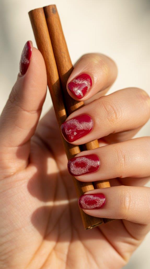A bright cranberry red is a holiday staple. To give it a fun twist, ask for a “sugar” effect. This is where a fine, clear glitter or powder is sprinkled over the last coat of polish before it cures, giving it a slightly gritty, sugary texture that looks like frosted cranberries.