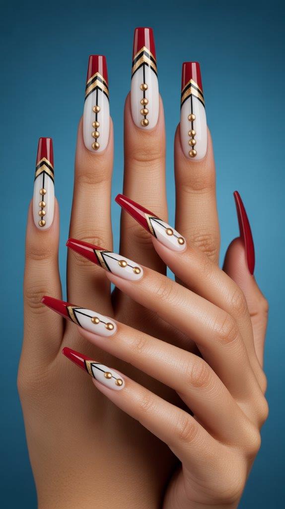 Take inspiration from the classic ballet. This involves using a color palette of red, white, and gold to create sharp, military-jacket-inspired designs. Think clean lines, gold dots for “buttons,” and maybe a touch of blue for a truly regal look.