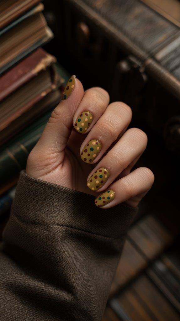Yes, you can even make this trend moody. Start with a deep, murky, greenish-yellow base. It’s more antique gold or old parchment than sunshine. Then, add small, precise polka dots in a rusty burgundy or forest green. Finish with a matte top coat. Suddenly, your polka dot nail art feels like it belongs in a mysterious library. It’s a profound, autumnal, and deeply stylish way to wear the combo.